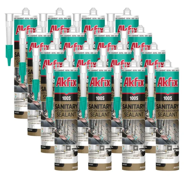 Akfix 100S Sanitary Kitchen & Bathroom Silicone Sealant, White is an acetoxy cure, high-performance silicone sealant designed specifically for gap filling and sealing in a wide range of sanitary applications. The silicone sealant provides outstanding resistance to mildew, UV rays, and temperature extremes, ensuring durability and reliability.