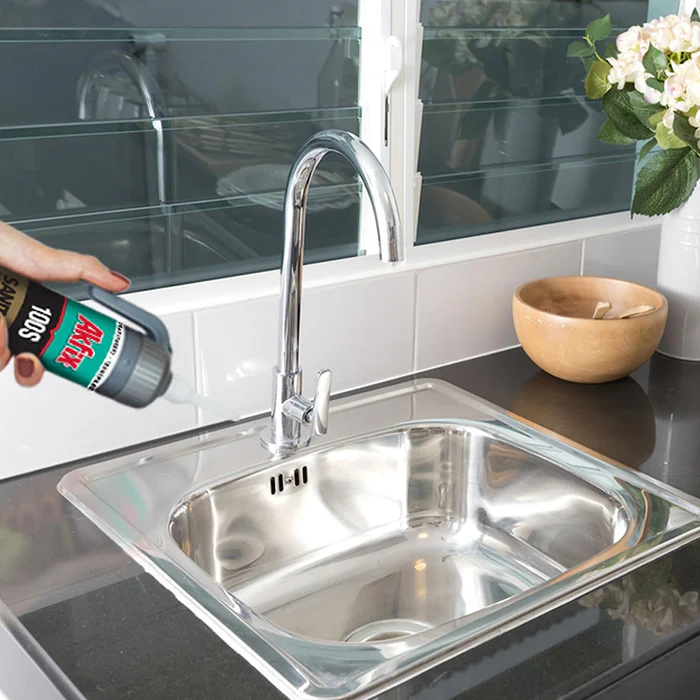 Akfix 100S Sanitary Kitchen & Bathroom Silicone Sealant, White is an acetoxy cure, high-performance silicone sealant designed specifically for gap filling and sealing in a wide range of sanitary applications. The silicone sealant provides outstanding resistance to mildew, UV rays, and temperature extremes, ensuring durability and reliability.