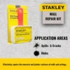 The Stanley S552 Wall Repair Patch Kit is your comprehensive solution for drywall repair. This all-in-one kit is perfect for fixing drywall cracks, splits, wall holes, and other surface imperfections on both walls and ceilings. It includes a ready-mixed dry wall repair kit compound, a flexible self-adhesive perforated aluminum patch, sandpaper, and an ergonomic plastic putty knife.